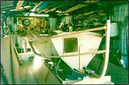 Other considerations were that I wanted to be able to tent her and sleep two on board, she could not be too big for wife Jan or 12 year old daughter Sarina to sail single handed but she still had to accommodate two adults, a twelve and a three in enough comfort to prevent friction between the junior members of the crew, and still be seaworthy enough to cope with my coastal cruising ambitions. As a cruiser she needed plenty of storage space, she needed to be dry and comfortable and also had to be suited to my three year old sons need to scramble around.